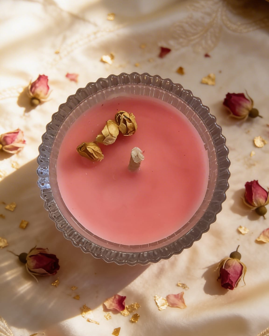 NOTA: avand plante naturale integrate, care au la randul lor culoare, este posibil ca nuantele de ceara (indiferent de colorantul folosit) sa fie usor diferit de la lumanare la lumanare